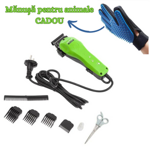 Aparat de tuns animale, 4 capete diverse marimi, accesorii incluse, pentru orice tip par + Manusa pentru par de animale CADOU