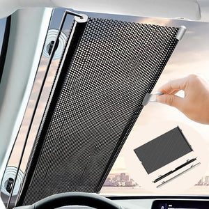 Ruloul de tip jaluzea poate fi fixat in pozitie extinsa prin agatarea de ventuza si folosirea unei incuietori. Metoda de perforare a materialului asigura absorbtia a aproximativ 70% din razele soarelui. Dimensiune: Latime 68 cm x Lungime 125 cm.
