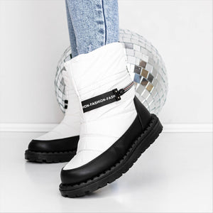 Cizme dama alb cu negru din piele ecologica si material textil Santo - Alege ce ti se potriveste si remarca-te