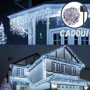 Instalatie Craciun 10m cu flash, 200 LED-uri, de exterior, tip franjuri, turturi ,fir alb, interconectabila + Instalatie solara 10 metri, 100 LED CADOU
