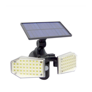 Lampa cu panou solar dublu tip split de perete 2 capete, cu senzor de miscare. Sonda inductiva sensibila inteligenta, lumineaza in avans distanta de detectare. Energie solara, ecologica si economisire a energiei, energia electrica externa nu este necesara.