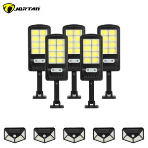 Set 5 lampi solare Jortan, 8 celule, 160 LED-uri COB, Telecomanda + 5 Lampi solare cu 100 LED, senzor de miscare CADOU