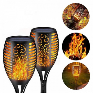 Ledurile sunt programate cu un algoritm inteligent ce le declanseaza la o diferenta de cateva ms. in perechi, astfel rezulta un efect de flacara care arde, avand lumina calda, ce imita perfect culoarea unei flacari cu fitil, real. Torta solara cu LED este prevazuta cu tarus pentru montarea in pamant. Lampa dispune de buton ON/OFF.