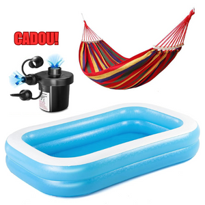 Pachet Promoțional – Piscină Gonflabilă cu 2 Inele + Hamac din Bumbac 200x80 cm + Pompă Electrică CADO