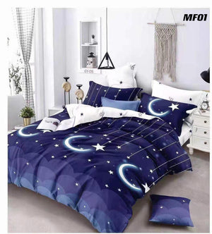 - Lenjerie de pat cu Elastic, Bumbac Finet, Pat Dublu, 6 Piese